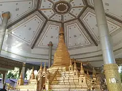 The Maha Shwe Thein Daw Pagoda (Burmese: မဟာ ရွှေသိမ်တော် ဘုရား, also known as the Shwetheindaw Pagoda) is a Buddhist temple in Thindaunggyi village, about two miles north of Kyaukse, Mandalay Region, Myanmar. The Maha Shwe Thein Daw Buddha image is enshrined in this temple, and is believed to grant the wishes of its worshippers.[1][2][3] Students from nearby regions come and pray at this pagoda for blessings before their exams.[4]
