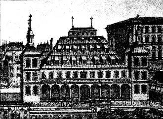 Construction of the mansion was begun in the 1630s on a piece of land owned by Jakob De la Gardie. De la Gardie tasked Hans Jacob Kristler with the construction. The five-floor building was built of brick and stone with a copper roof. The living quarters were situated in the ground floor, the festivities hall on the second (piano nobile), dancing and music rooms on the third, and stores and armoury on the fourth and fifth floors. The cellar comprised larders, while housekeeping facilities, stables and gardens were situated outside the main building. Four towers marked the corners of a facade richly decorated with stone masonry and adorned with bay windows and column-supported loggias in Italian style. The interior was equally splendid, with stucco decorations, picturesque plafonds, tapestries, decorative masonry, and galleries of paintings.