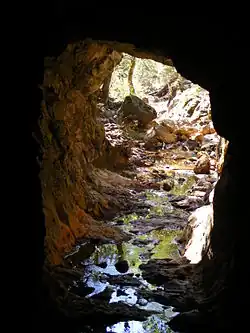 Malakoff Diggins State Historic Park is a state park unit preserving Malakoff Diggins, the largest hydraulic mining site in California, United States. The mine was one of several hydraulic mining sites at the center of the 1882 landmark case Woodruff v. North Bloomfield Mining and Gravel Company.[2] The mine pit and several Gold Rush-era buildings are listed on the National Register of Historic Places as the Malakoff Diggins-North Bloomfield Historic District.[3] The "canyon" is 7,000 feet (2,100 m) long, as much as 3,000 feet (910 m) wide, and nearly 600 feet (180 m) deep in places. Visitors can see huge cliffs carved by mighty streams of water, results of the mining technique of washing away entire mountains of gravel to wash out the gold. The park is 26 miles (42 km) north-east of Nevada City, California, in the Gold Rush country.[4] The 3,143-acre (1,272 ha) park was established in 1965.[5]