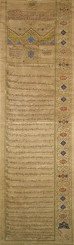 As queen mother, she exerted considerable political influence during the reign of her son from 1848 until her death in 1873.[3] She is described as a strong personality and politically gifted.[3] Strongly rooted in family and clan networks, she tended to favour and support the Qajar nobility rather than merited commoners, partly also perhaps because members of the Qajar family and clan had much better access to her as compared to outsiders.[3]