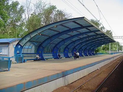 Malenkovskaya is a train station on the Yaroslavsky suburban railway line in Moscow, Russia. It is located on the border of Eastern and North-Eastern Administrative Okrugs, 4.5 kilometres (2.8 mi) from Yaroslavsky railway terminal.