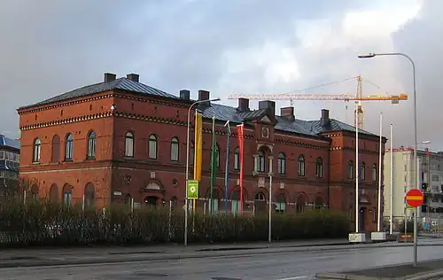 Malmö Västra station (English: Malmö West Station) is a former railway station in Malmö, Sweden. It was established in 1874 with the creation of the Malmö–Ystad Line, and from 1886 it was also used by the Malmö–Trelleborg Line. In 1941, the station was taken over by the Swedish state.[1] A new and larger station building was built and its use as a station ended in 1955. The station building was later used as offices for the City Tunnel project.
