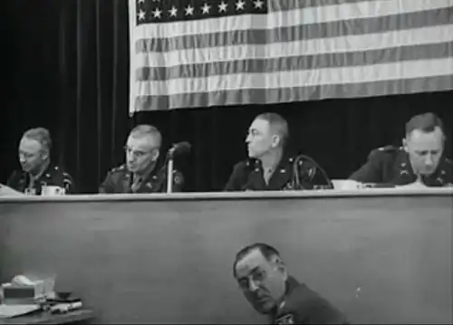 The Malmedy Massacre Trial: Waffen-SS Lt. Col. Joachim Peiper testifies through his interpreter about his participation in the Malmedy Massacre (1944).