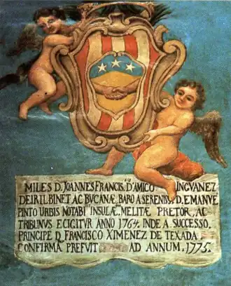 - ^ Gauci C.A. The Genealogy and Heraldry of the Noble Families of Malta, Vol. 2 (PEG, Malta, 1992), 339