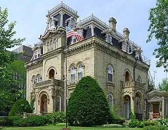 The Mansion Hill Historic District encompasses a part of the Mansion Hill neighborhood northwest of the capitol square in Madison, Wisconsin. In the 19th century the district was home to much of Madison's upper class, and held the largest concentration of large, ornate residences in the city, but in the 20th century it shifted to student housing. In 1997 the district was added to the National Register of Historic Places.[2]