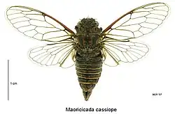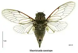 - ^ a b "Maoricicada cassiope (Hudson, 1891)". Manaaki Whenua - Landcare Research. Retrieved 16 December 2018.