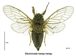 - ^ a b c "Maoricicada mangu (White, 1879)". Manaaki Whenua - Landcare Research. Retrieved 16 December 2018.
