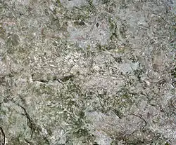 A piece of the Fort Atkinson along Aux Sable Creek in Illinois, showing the coarse texture and multitude of colors.
