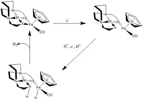 - ^ Lyon, Erica J; Zhao, Xuan; Georgakaki, Irene P.; Darensbourg, Marcetta Y. (2003). "The Organometallic Active Site of [Fe]hydrogenase: Models and Entatic States". Proceedings of the National Academy of Sciences of the United States of America. 100 (7): 3683–3688. Bibcode:2003PNAS..100.3683D. doi:10.1073/pnas.0536955100. PMC 152982. PMID 12642671.