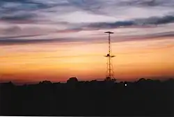 The site still includes a prominent local landmark, a 360-foot (110 m)-high (110 m) former Chain Home radar tower visible across the surrounding countryside.[4] The last remaining tower maintaining all of its platforms, the tower was given a Grade II listed status by Historic England in October 2019.[5]
