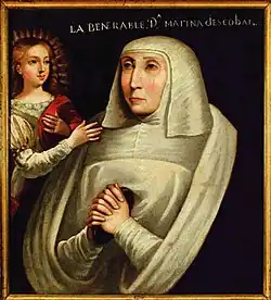 Marina de Escobar Montaña (8 February 1554 – 9 June 1633) was a Spanish Catholic mystic of the Counter-Reformation era. Restricted in her activity due to poor health, she devoted herself to prayer and contemplation under the guidance of her Jesuit confessors and spiritual advisors. Marina experienced visions of a number of saints, and within her lifetime she acquired a reputation throughout Spain as a holy woman, especially in her home city of Valladolid.