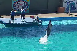 The history of Marineland began in 1964 when an Auckland architectural firm was commissioned by Napier City Council under mayor Peter Tait to design an aquarium and dolphin pool.[1] In late January 1965 Marineland caught its first common dolphin, Daphne, and the facility opened two days later. In 1969, two dolphins died when vandals broke in and fed them nails.