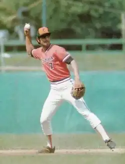 Belanger was nicknamed "The Blade" because of his tall, narrow and angular frame—6 ft 1 in (1.85 m) and 170 pounds (77 kg).[12] Belanger was a flashy fielder and won eight AL Gold Gloves (1969, 1971, and 1973–78).[13] He is second all-time in defensive WAR, behind only Ozzie Smith and just above teammate third baseman Brooks Robinson.[14] He was also named to the All-Star team in 1976.[15]