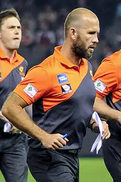 McVeigh then took a head coaching role at the Giants Academy, then transitioned into an assistant coaching role at the Greater Western Sydney Giants from 2015, serving as the defensive coach.[9][10] McVeigh was appointed as the caretaker senior coach of GWS Giants until the end of the 2022 season, following the mid-season resignation of senior coach Leon Cameron.[11][12][13][14][15][16] His first match in charge, in round 10, saw the Giants defeat West Coast by 52 points.[17]
