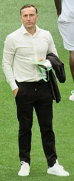 Mark James Noble (born 8 May 1987) is an English former professional footballer who played as a midfielder. He is the sporting director of Premier League club West Ham United. A fan of the club since childhood, Noble spent eighteen years with West Ham playing as a central midfielder, serving as club captain for seven years, before retiring at the end of the 2021–22 season. Aside from two brief loan spells at Hull City and Ipswich Town, Noble played all of his first team matches for the club, earning him the nickname "Mr West Ham".[4][5]