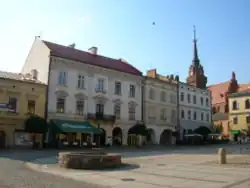 The Market Square in Tarnów, Poland, is a historic market square located at the heart of the Old Town.[1] Established during the city's founding in 1330, it was laid out according to medieval urban planning principles. The square is surrounded by tenements built between the 16th and 19th centuries, with a Renaissance town hall as its central landmark.