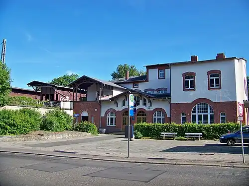 Markkleeberg is a railway station in Markkleeberg, Saxony, Germany. The station is located on the Leipzig–Hof railway. The train services are operated by Deutsche Bahn. Since December 2013 the station is served by the S-Bahn Mitteldeutschland.
