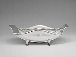 Throughout their history, Marquand and Co. created a vast array of silver products, including "helmet" shaped gravy boats from 1833 to 1839, as well as intricate full-service tea sets.[5][6] According to a contemporaneous article in the New York Times, Frederick was "the most prominent jeweler in the city".[7] As of 2023 many of their pieces are held in the collections of the Metropolitan Museum of Art.[8] He was also an early innovator in chocolate consumption, producing a pear-shaped chocolate pot for prominent New York surgeon Valentine Mott.[9]