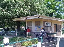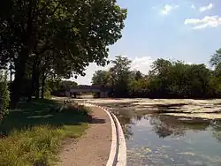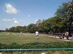 Marquette Park is part of a system of 14 parks designed in 1903 by the Olmsted Brothers. At 323 acres (1.31 km2) in size, it is the largest of the revolutionary neighborhood parks created by the South Park Commission in the early 20th century. The Superintendent at the time, J. Frank Foster, envisioned the "new parks as beautifully landscaped 'breathing spaces' that would provide educational and social services to the city's congested immigrant neighborhoods."[1] "Social reformers launched a playground movement for the creation of additional parks."[2] In 1899 and 1903, the state legislature authorized the three park commissions: Lincoln Park Commission, West Park Commission, and the South Park Commission, to acquire property for new parks. "The South Park Commission opened a system of 10 innovative neighborhood parks in 1905, which soon inspired similar parks in the West and Lincoln Park systems and in other cities across the United States."[1]