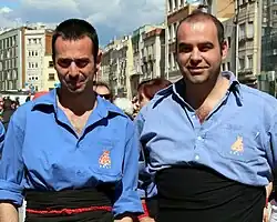Marrecs de Salt (Catalan pronunciation: [məˈrɛɡz ðə ˈsal]) is a group of castellers (human tower builders) from Salt, Girona (Catalonia), founded in 1995. They are also to be considered as the local group in Girona,[5] together with their university counterpart: Xoriguers de la UdG. They are one of the seven active groups in the province of Girona, and since the dissolution of Castellers de l'Albera, also the oldest. Their best human tower is the 5 in 8 and their best performance was on 27 October 2013 for the performance of Sant Narcís in the city of Girona, were they completed the 4 in 8, the 2 in 8 with double base, the 3 in 8 and the pillar of 6. Their shirt is blue standing for the river Ter, which flows through both Salt and Girona, as well as other regions of the province.