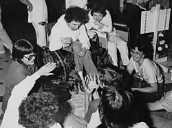 Sargent was a key member of the feminist group Grassroots Group of Second Class Citizens, an organization that supported the ratification of the Equal Rights Amendment (ERA).[1] The group organized a Day of Rebellion in Illinois in 1982 and Sargent served as spokesperson for the group.[2] Sargent was photographed wearing chains outside the Illinois State Senate by Anne Leibowitz and the photo ran in Life Magazine.[1] When Sargent was asked by the press if she was concerned the direct action tactics might turn off some ERA supporters she replied, "It's too late for that...we're here to step up the confrontation."[3] Sargent was photographed in 1982 with Sonia Johnson who was