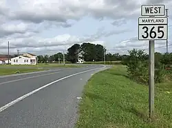 Construction began on MD 365 from Snow Hill in 1924.[3] The highway was completed to Mount Wesley in 1927 and to Public Landing in 1929.[4][5][6] In 2015, a superstreet intersection was constructed at US 113.[7]