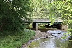 Veirs Mill Road is named for a grist and sawmill on Rock Creek built by Samuel Clark Veirs in 1838 and operated by his family until 1924. This mill drew business from Rockville and Mitchell's Crossroads, which later became Wheaton, along its namesake road.[4] MD 586 was constructed starting in 1934.[5] By the end of 1935, the highway was paved as a macadam road from MD 97 northwest to a branch of Rock Creek next to the modern MD 586–MD 185 intersection. Two segments of concrete road were also completed from the end of the macadam segment northwest to Turkey Branch and from First Street Rockville southeast to Edmonston Drive in Rockville.[6] The remainder of the highway was completed in 1937 concurrent with Veirs Mill Road's original bridge across the Baltimore and Ohio Railroad (now CSX) between First Street and U.S. Route 240 (now MD 355).[7][8] MD 28 was relocated east on Veirs Mill Road across the new bridge, then north on First Street when the project was complete.[9]