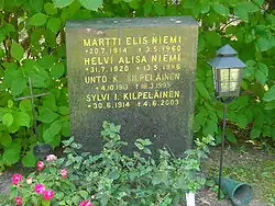 Masa Niemi was buried at the urn area of the Hietaniemi Cemetery (block 17, row 1, grave 2).[6]