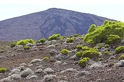 Subalpine shrub occurs on the volcanoes on Réunion, above the treeline at 1800 to 2000 metres elevation. Average annual rainfall is from 2000 to 6000 mm, and frosts occur regularly in winter. Characteristic shrubs include Erica reunionensis and Erica galioides (Ericaceae), Stoebe passerinoides and species of Hubertia and Psiadia (Asteraceae), and Phylica nitida (Rhamnaceae). Herbaceous endemic species include Heterochaenia rivalsii (Campanulaceae), Eriotrix commersonii (Asteraceae), and Cynoglossum borbonicum (Boraginaceae).[12]