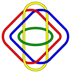 More generally, n-component Brunnian links – links such that any -component sublink is unlinked, but the overall n-component link is non-trivially linked – correspond to n-fold Massey products, with the unlinking of the -component sublink corresponding to the vanishing of the -fold Massey products, and the overall n-component linking corresponding to the non-vanishing of the n-fold Massey product.