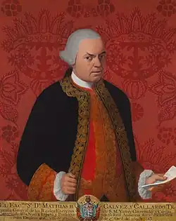 Matías de Gálvez y Gallardo, KOS (1717 – November 3, 1784) was a Spanish general, the Captain General of Guatemala from April 1779 to 3 April 1783, and Viceroy of New Spain from 29 April 1783 to 3 November 1784.