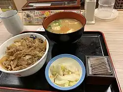 Matsuya Foods Co. (株式会社松屋フーズ, Kabushiki-gaisha Matsuya Fūzu) is a chain of restaurants, including Matsuya (松屋), which sells gyūdon (or gyūmeshi), Japanese curry, and teishoku. Matsuya was established in Japan in 1966, founded by Toshio Kawarabuki.[1] As of 2025, Matsuya has 1,265 restaurants throughout 33 Japanese prefectures.[2] Overseas stores can be found in China and Taiwan, Mongolia.[3] In addition to Matsuya, the company operates a chain of restaurants including curry, tonkatsu, sushi, and Chinese restaurants.[4]