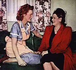 Although O'Hara became known as the "Queen of Technicolor" (like Rhonda Fleming), she professed to dislike the process because it required special cameras and intense light that burned her eyes and gave her klieg eye.[79] She believed that the term negatively affected her career, as most people viewed her solely as a beauty who looked good on film rather than as a talented actress.[80] In 1944 O'Hara was cast opposite Joel McCrea in William A. Wellman's biographical western Buffalo Bill.[81] Though O'Hara did not think that McCrea was rugged enough for the part of William F. "Buffalo Bill" Cody, and according to Malone gave her "little to work off", it did well at the box office.[82] Contrary to O'Hara's opinion,[83] Variety was highly praising of the film, describing it as a "super-western and often a tear-jerker", and thought that McCrea was convincing in the part and that O'Hara's own performance was "satisfactory".[84]