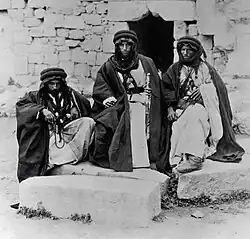 By the early 19th century, many of the twenty-five tribes in the Hama Sanjak either belonged to the Mawali or were affiliated with the tribe.[15] The Mawali of Hama were the older-established Shamali (Northern) faction, mainly composed of the Masharifa, Bani Izz and Tuqan clans. The Qibli (Southern) faction, represented by the Jamajima and Khutaba clans, did not pay taxes in the Hama Sanjak, but nevertheless frequently pitched their tents near the villages there.[16] Other tribes in the Hama region, such as the Fawa'ira, were formed out of breakaway factions of the Mawali.[17] The small but militant Turki tribe may also have been of Mawali origin.[18] The Mawali's principal foes were the Turki and Hadidiyin, the latter having migrated to the Hama region from the steppe near Aleppo and the Euphrates valley in the mid-18th century due to pressures from the Fad'an.[17]