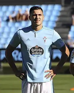 In May 2017, Gómez signed a five-year deal with La Liga side Celta Vigo, moving abroad for the first time in his career.[8] He made his debut for the club on 19 August, starting and scoring a brace in a 2–3 home loss against Real Sociedad,[9] and finished his debut season with 17 goals from 36 games, seventh highest in the division.[10]