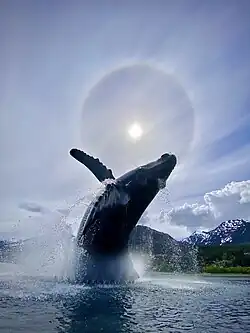 Solar Halo at the Humpback Whale Sculpture in Juneau, Alaska on May 25, 2021.