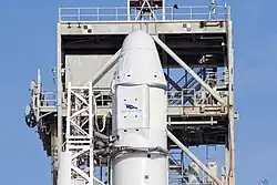 Dragon capsule, containing Mazaalai, mounted on Falcon 9 rocket.