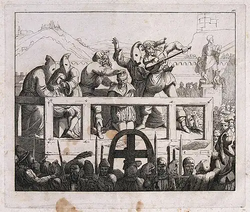 The last reported use of this form of punishment was in September 1806; the much more common capital punishments inflicted by the Papal States were hanging or beheading. According to author Geoffrey Abbott, mazzatello constituted "one of the most brutal methods of execution ever devised, requiring minimal skill on the part of the executioner and superhuman acquiescence by the victim".[3] Megivern cites mazzatello as one example of an execution method devised by the Papal States that "competed with and in some instances surpassed those of other regimes for cruelty".[2]