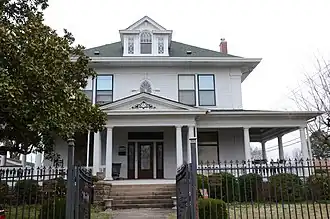 The McKennon House is a historic house at 115 Grandview in Clarksville, Arkansas. It is a two-story wood frame American Foursquare house, with weatherboard siding and a hip roof flared at the edges. The front face of the roof is pierced by a gabled dormer housing a small Palladian window, its elements separated by narrow pilasters. A single-story porch wraps around three sides, supported by Tuscan columns, with a gabled projection at the main entrance. The house was designed by noted Arkansas architect Charles L. Thompson, and was built about 1907.[2]
