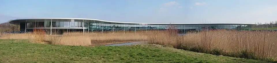 In 2011, the size of the centre was doubled after a second building, the 34,500 m2 (371,000 sq ft) McLaren Production Centre, was built.[3] McLaren is also planning an extension to this building to be used as an applied technology centre, as well as to house a new wind tunnel and simulator for McLaren Racing.[4][5][6] The wind tunnel became operational by October 2023.[7][8]