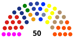 As of the 2024 election, the council has 50 elected members, with 5 electoral districts.[13] The current speaker is Wong Chun Sen Tarigan of the Indonesian Democratic Party of Struggle, holding the position since 25 November 2024.[14]