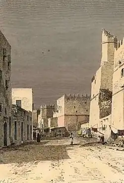 Sfax lived an important urban development with the arrival of the Husainid dynasty to the power. In fact, it was not until the 17th century that the first extra-muros buildings appeared. Towards the 18th century, gardens appeared, forming a belt around the medina, while a suburb began to develop on the side of the sea.[2] It was during this period that Mahmoud Megdiche published his book, Nuzhat Al Anthar fi Ajaibi Tawarikh wa Al Akhbar, which remains today an important reference on the history of Sfax.