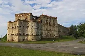 The Medzhybizh Fortress (Ukrainian: Меджибізька фортеця, romanized: Medzhybiz'ka fortetsya) also known as Medzhybizh Castle (Ukrainian: Меджибізький замок; Polish: Zamek w Międzybożu), is situated at the confluence of the Southern Bug and Buzhok rivers, in the town of Medzhybizh, Ukraine. Today the castle is part of the National Historical and Cultural Reserve.