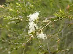 4. ^ Craven, L. A.; Barlow, B. A. (1997). "New Taxa and New Combinations in Melaleuca (Myrtaceae)". Novon. 7 (2): 118. doi:10.2307/3392182. Retrieved 9 June 2015.