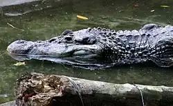 Melanosuchus, from Ancient Greek μέλας (mélas), meaning "black", and σούχος (soúkhos), meaning "crocodile", is a genus of caiman. The genus is most commonly referred to as the "Black Caimans". The black caiman of South America is the sole extant (living) species, and is the largest living member of the subfamily Caimaninae, as well as the entire alligator family Alligatoridae.