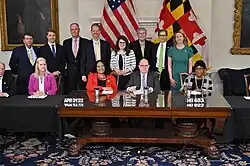 Griffith, Governor Larry Hogan and House Speaker Adrienne A. Jones enacting law in 2022