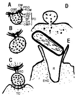- ^ YashRoy RC (June 2003). "Eucaryotic cell intoxication by gram-negative pathogens: a novel bacterial outermembrane-bound nanovesicular exocytosis model for type-III secretion system". Toxicology International. 10 (1): 1–9.