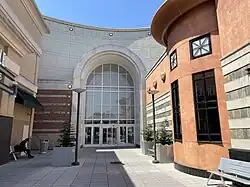 Menlo Park converted to a fully enclosed mall in 1967, the first in Central New Jersey.[13] Most of the mall was closed from 1990 to 1991, when it underwent a significant renovation and expansion that changed it from a single-story structure into its current two-story form.[14] In expanding and fitting into the space, the new Menlo Park Mall was built on an angle with the vertex occurring at center court. The renovated Menlo Park Mall was also changed to have galleria style skylights, domed fountain courts, marble flooring, dramatic lighting, sculptures and a large, skylit food court featuring trees and sculptures, designed to look like a formal garden. The new mall was designed by architecture firm RTKL Associates Inc. of Dallas, Texas. Two parking decks were also added, as was a 12-screen Cineplex Odeon movie theater which replaced the smaller Menlo Park Cinema on Route 1. Cineplex was later replaced by an AMC Dine-In Theater. Macy's was the only store to remain open during the primary expansion. Nordstrom officially opened to the public at Menlo Park Mall on September 27, 1991.[15]