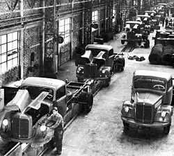 The San Martín plant closed in July 1956 and all production concentrated in the González Catán factory. In 1958 the intervention of the company was lifted and a new board of directors was appointed. The following year, the construction works for a second plant were completed. Production of the L 311/312 trucks and LO 311/312 buses began.[9] The 1960s began with administrative changes in the company that passed into the hands of Daimler-Benz AG. Two years later, the OM 321 engine was industrialized and in 1963 the 10,000th Mercedes-Benz unit manufactured in the country rolled off the assembly lines.[6]