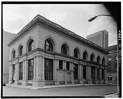 The Merchants' National Bank Building (1895), Baltimore was a historic bank building at 301 Water Street, at the corner of South Street, in Baltimore, Maryland. It was a 7-story, Renaissance Revival style building designed by the Baltimore-based architectural firm of Baldwin & Pennington, and constructed in 1893-1895. Johns Hopkins, a Baltimore businessman, abolitionist, and philanthropist, had been president of the bank from 1853 until his death in 1873.[2][3]